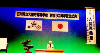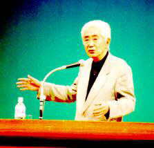演題「人間再発見」 自分の責任で、本当に自己を追求できるのは若いとき。 青春時代の一つ一つの瞬間の大切さを、大阪弁で語る。 その巧みでテンポのよい口調に感動し、21世紀を 自分の希望を語りながら生き抜く勇気を与えられた。 |